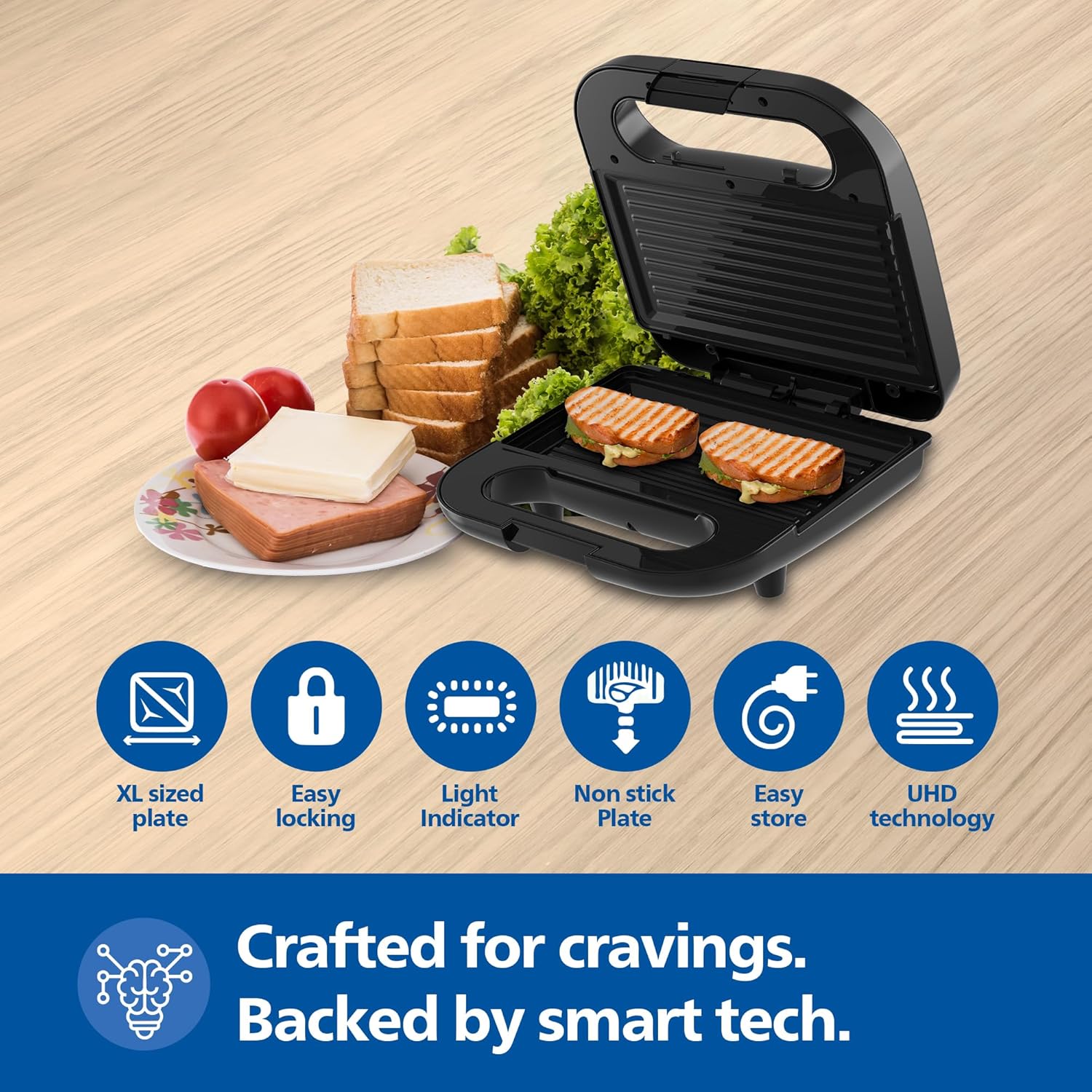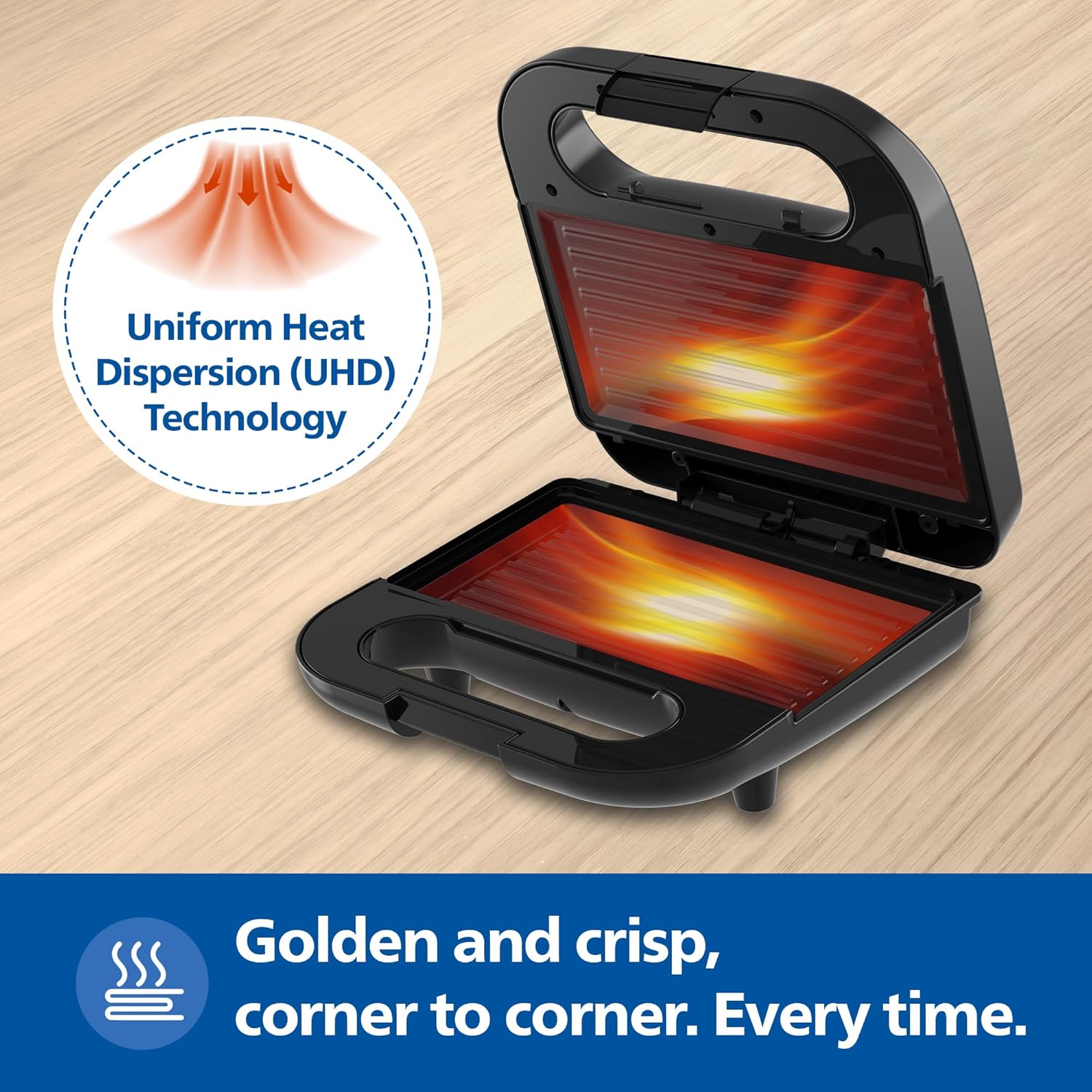 Philips HD3010/80 IN SANDWICH MAKER- GRILL XL size | Black with Metallic Finish | Non Stick Plate | UHD Technology | Easy Locking