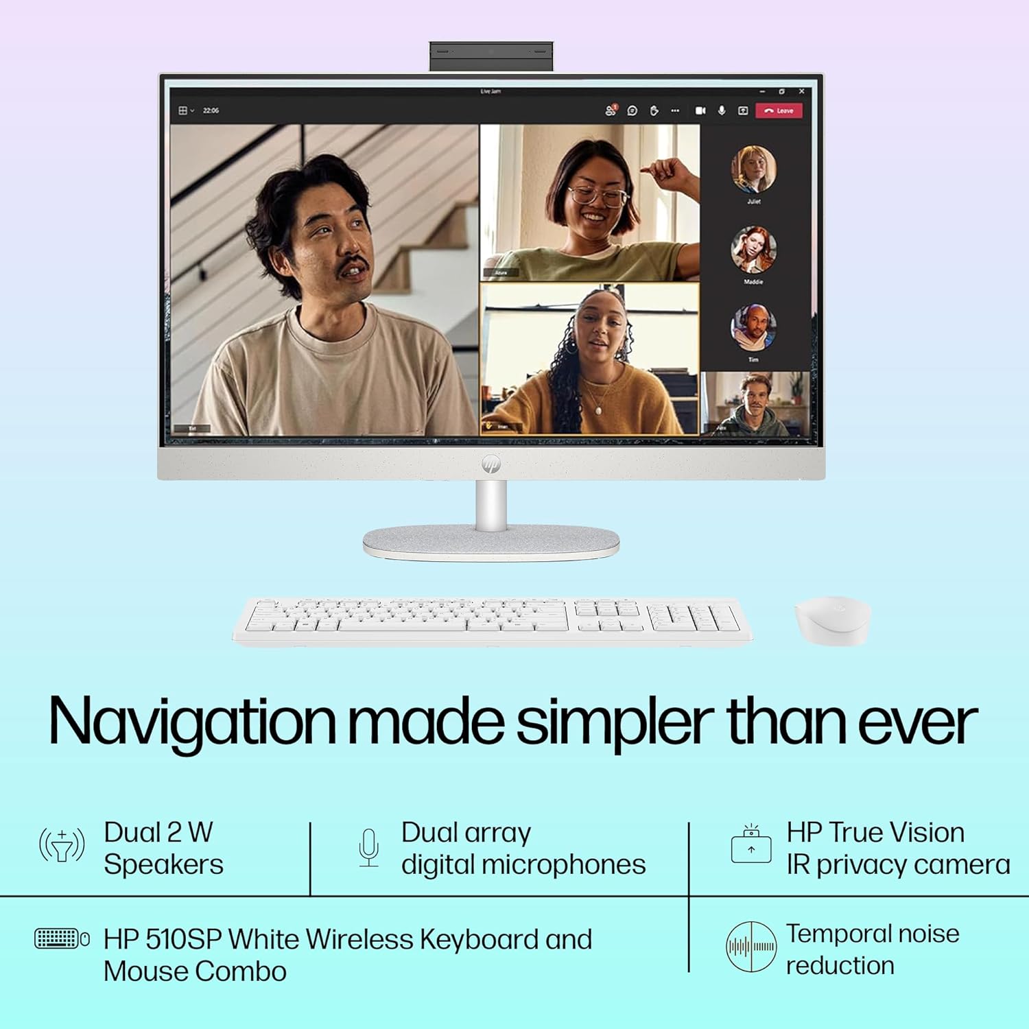 • Features: Keyboard: HP 710 White Wireless Keyboard and Mouse Combo| Camera: HP True Vision 1080p FHD IR tilt privacy camera with temporal noise reduction and integrated dual array digital microphones| Wireless: Realtek RTL8852BE Wi-Fi 6 (2x2) and Bluetooth 5.3 wireless card (supporting gigabit data rate) | Audio: Dual 5 W speakers