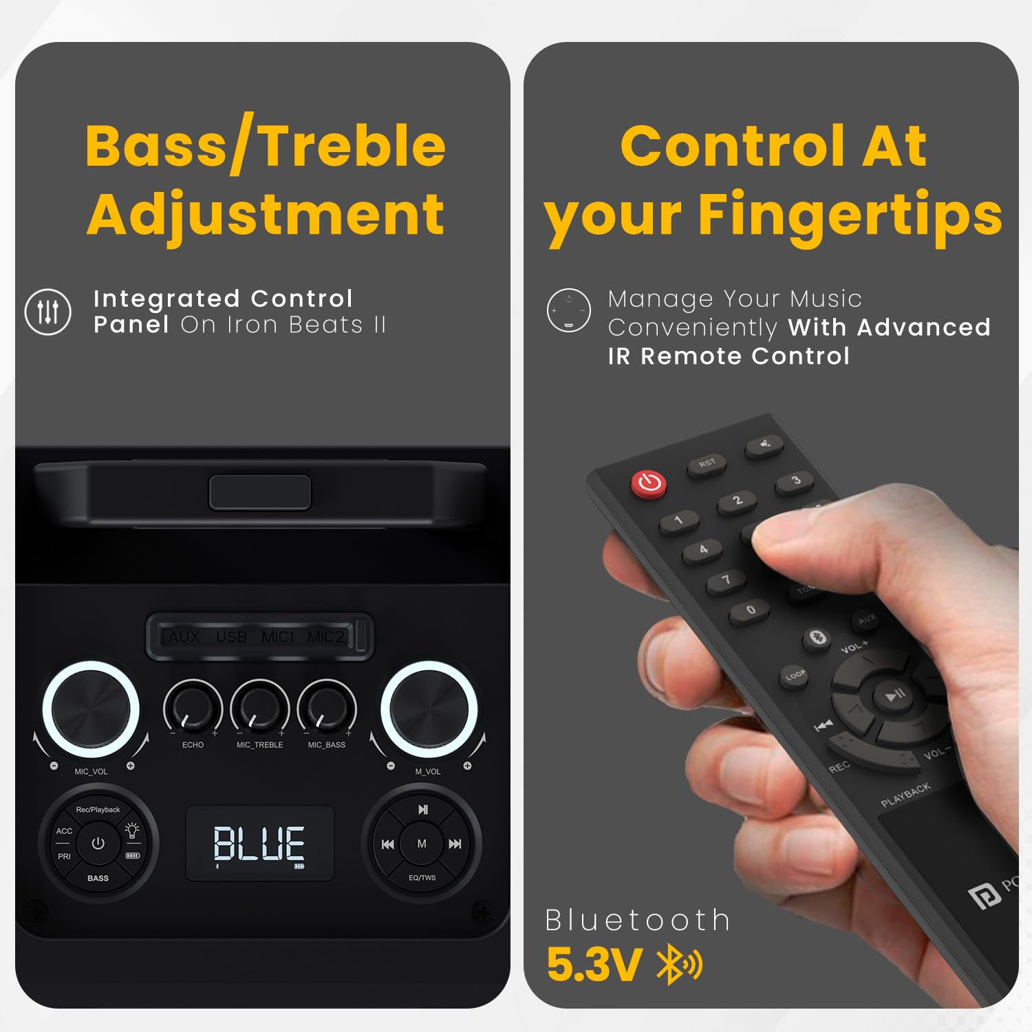 Portronics Iron Beats II 250W Wireless Bluetooth Party Speaker with Wireless Karaoke Mic, Upto 6 Hours Playtime, RGB Lights, Trolley Handle with Wheels, Multiple EQ Mode, Deep Bass, Fast Charging