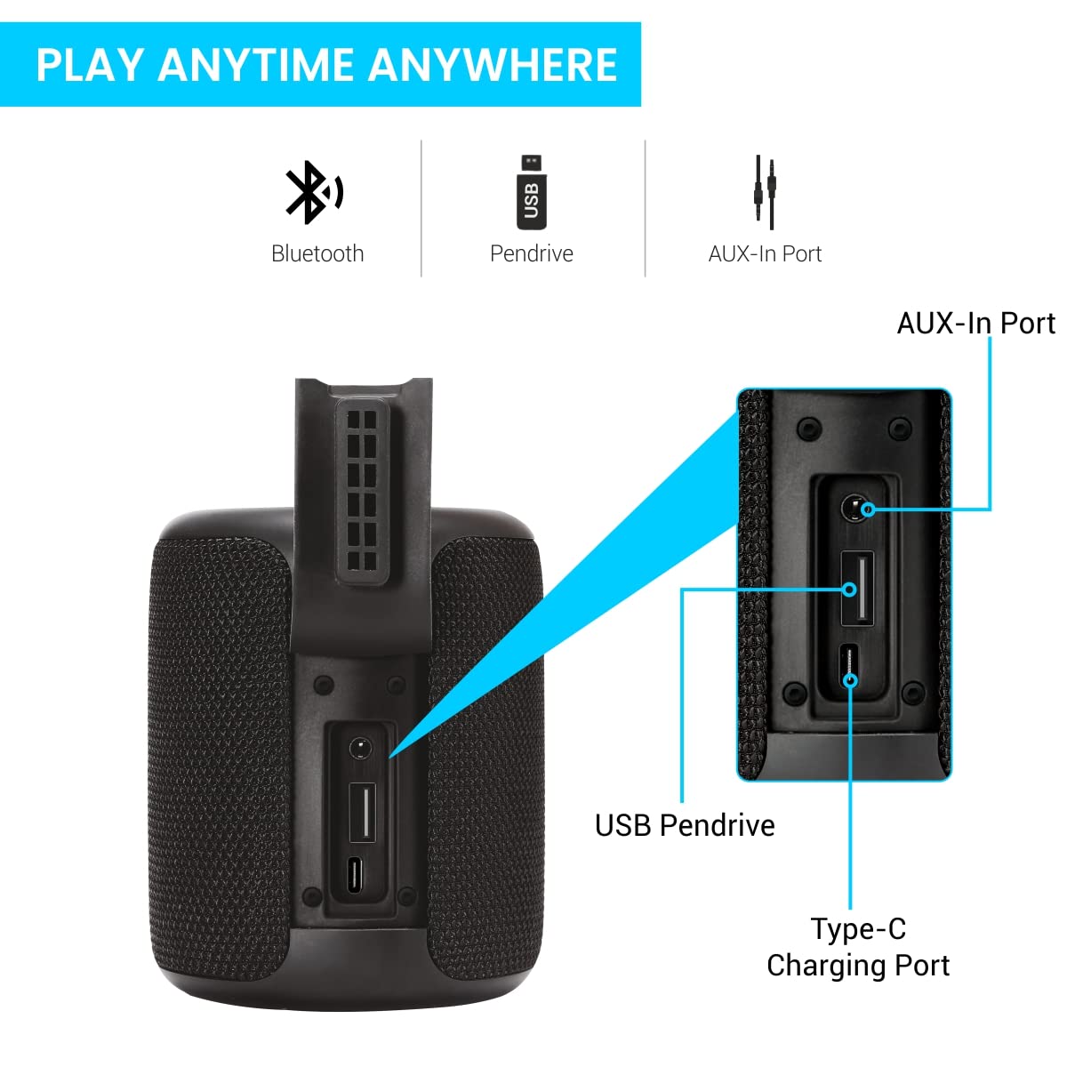 - <b>Wireless 5.0:</b> Groove to your favorite music without the hassle of wires with the latest Bluetooth 5.0 technology. Consumes lower energy and is designed for immediate device connection. What’s more, play anytime anywhere with an Aux cable or even a Pendrive.