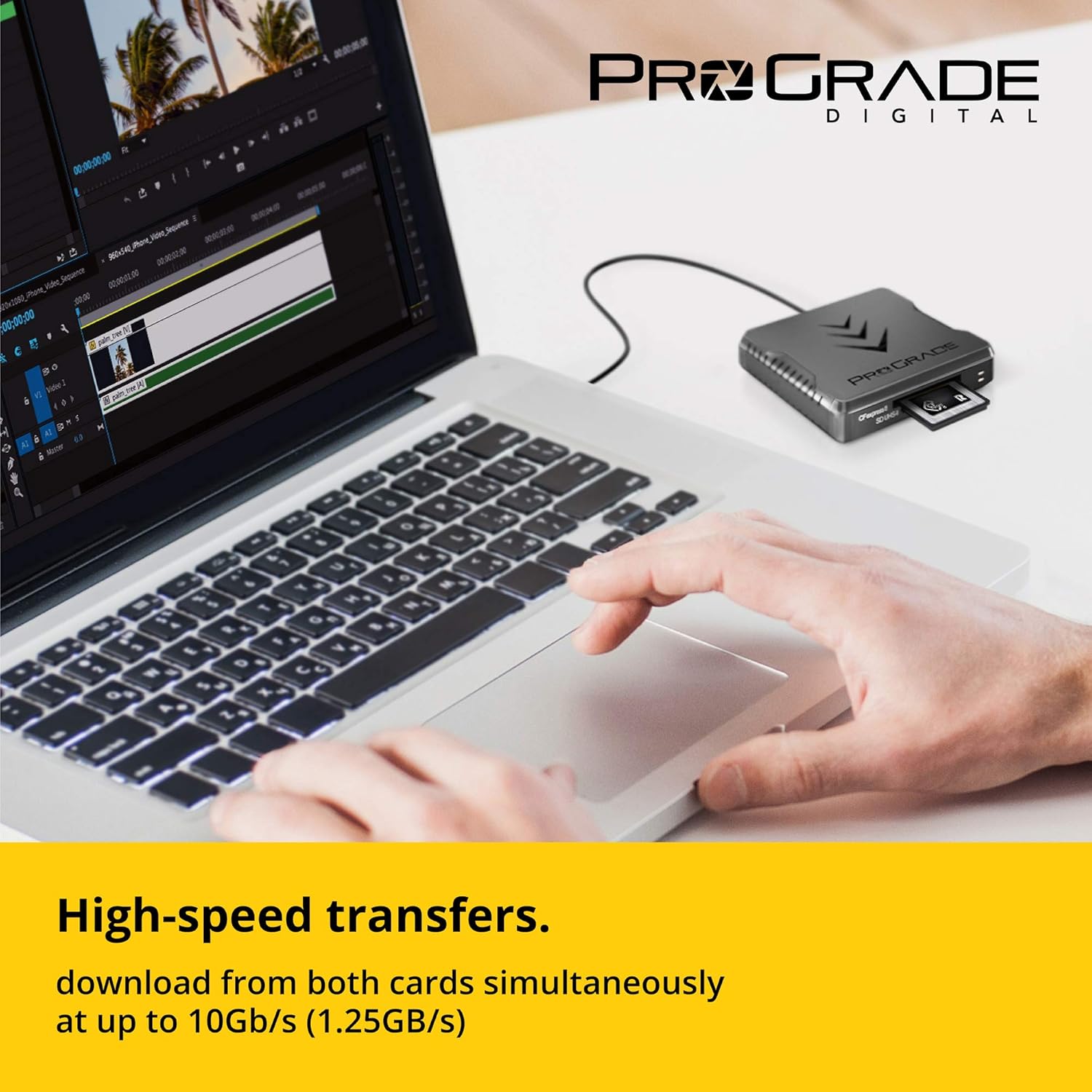 - DO MORE OF WHAT YOU LOVE: Because the ProGrade Digital™ USB 3.2 Gen 2 CFexpress™ and SD™ dual-slot memory card reader transfers your data at lightning speed - up to 1.25GB/s (10Gb/s) from both cards simultaneously - you can spend more time creating and less time waiting on downloads.